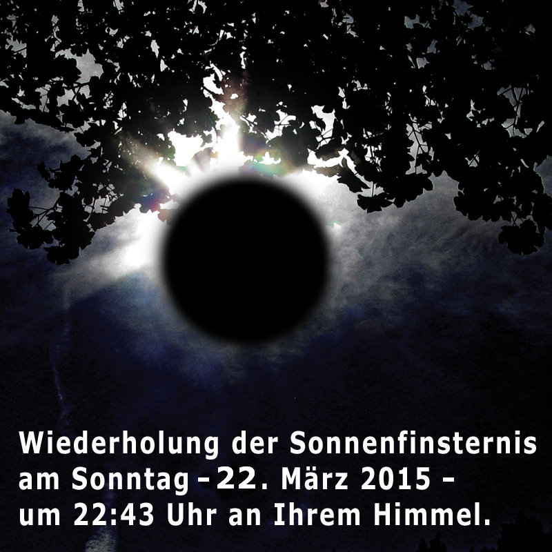 Berlin (brez) – Damit auch jene Bürger in den Genuss einer Sonnenfinsternis kommen können, die am Freitagmorgen drinnen oder unter Tage arbeiten, die zu der Zeit operiert werden oder einfach nur ausschlafen wollen, haben sich die Sonnen- & Mond-Minister aller Bundesländer bereits vor zwei Wochen dazu entschieden, die Sonnenfinsternis vom heutigen Freitag am kommenden Sonntag noch einmal zu wiederholen. „Wir haben keine Kosten und Mühen gescheut, um alle Bürger zufrieden zu stellen", erklärten die Minister in ihrer Erklärung. Aufmerksame Bürger hatten bereits am vergangenen Sonntagabend eine „unerklärliche Lichterscheinung“ am nächtlichen Abendhimmel gesichtet. Nun hat das Ministerium für Sonnen- & Mondfinsternis zugegeben, dass es sich dabei um die ersten Vorbereitungen zur Wiederholung der Sonnenfinsternis gehandelt hat. Was den Bürgern in den Medien als Meteorit verkauft wurde, war in Wahrheit der erfolgreiche Versuch, die Umlaufbahn der Erde um die Sonne so zu beeinflussen, dass pünktlich am Sonntagabend um 22:43 Uhr die Sonnenfinsternis nochmal wiederholt werden kann. Alle Kritiker, die sich nun Sorgen um die temporäre Verschiebung der Erd-Umlaufbahn machen, dürfen beruhigt sein. Schon nach wenigen Tagen soll die Erde wieder ihre gewohnte Umlaufbahn eingenommen haben, sodass bereits am Montagmorgen niemand mehr die kleine Veränderung bemerken wird. Und wenn die Sonne an dem Tag nicht scheinen sollte, dann sowieso nicht.